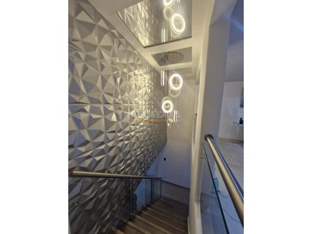 En el barrio Nueva Tequendama , se vende una hermosa casa moderna construida en 2017, con excelentes acabados y amplios espacios. En el primer piso cuenta con sala comedor con aire acondicionado, baño social, persianas eléctricas, sistema de luces, comedor independiente, habitación con baño privado, cocina moderna con habitación de servicio, y una amplia zona de oficios. En el segundo piso dispone de dos habitaciones con aire acondicionado (la principal con baño privado), una gran sala de cine y sala auxiliar con baño. La propiedad ofrece seguridad y confort con parqueadero, rejas, cámaras de seguridad y cerca eléctrica.