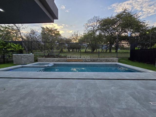 Descubre esta exclusiva casa en condominio para estrenar en el barrio pance, con 4 habitaciones de 2 pisos más terraza y 6 baños, distribuidos en 500 metros cuadrados construidos y 700 lote. Con un total de 7 parqueaderos y 4 cubiertos, esta propiedad ofrece amplitud y comodidad para tu familia. esta casa cuenta con sala de cine, discoteca insonorizada, 1 habitacion en el primer piso y 3 en el segundo piso 6 baños, cocina abierta, piscina, aljibe, zona bbq, jacuzzí, dos perreras, la casa tiene dos doble alturas en la sala principal y el comedor, terraza con una vista increible a los farallones, 5 puertas de seguridad, deposito, alcoba de servicio, Ubicada en una zona privilegiada de pance, disfrutarás de tranquilidad y seguridad. ¡No pierdas la oportunidad de vivir en este increíble hogar! Contáctanos para más información el condominio tiene piscina parqueadero visitantes, salon social, juegos para niños, aceptan parte de pago en permuta, papeles al dia. Código interno: V5761