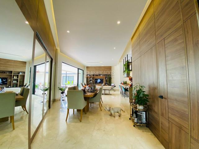 Se vende espectacular propiedad, dos casas en una! ideal para vivir con tus padres, suegros, hermanos o amigos, juntos pero no revueltos. Cada casa tiene, entradas principales y parqueaderos independientes, acabados modernos y con estilo. Cuenta con 3 habitaciones, cada una con baño y vestier, cocina abierta, la segunda cocina es cerrada, sala comedor amplio, baño social, cuarto y baño de servicio, despensa y zona de oficios. Comparten la zona social, piscina y un maravilloso bosque lleno de árboles y pajaros, un lago con potencial de diseñar un deck o tu propio spa en medio de la naturaleza. El lote tiene la posibilidad para ampliar las casas, unirlas y/o dejar una sola. Condominio con vigilancia privada.(M-MC)