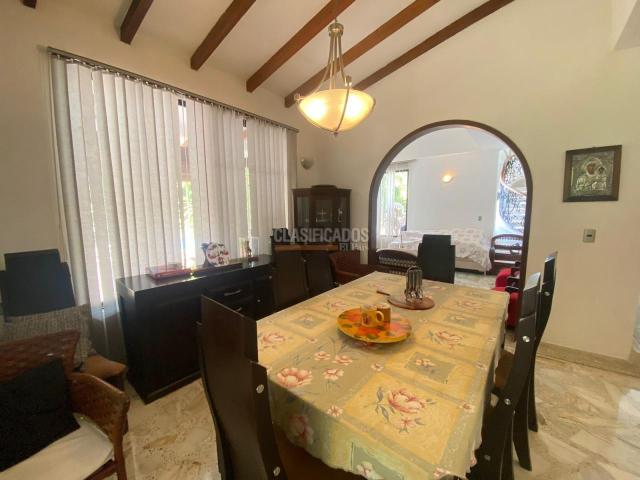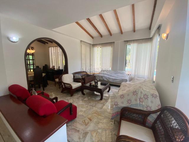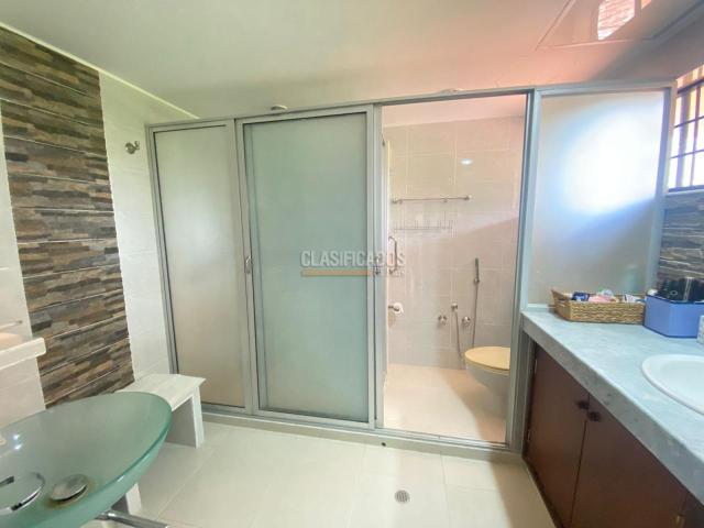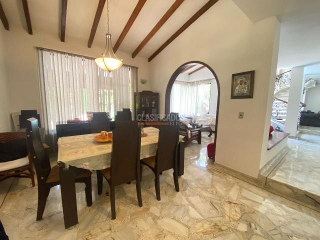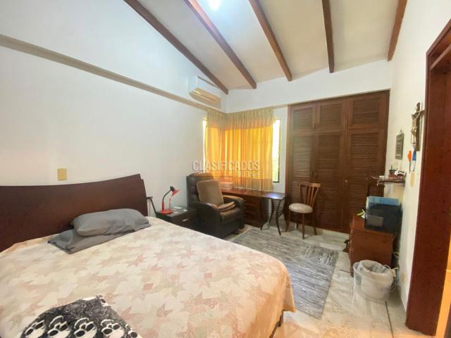Amplia casa con 745 m2 de lote y construidos aproximadamente 530 m2 con piscina privada, consta de comedor, sala, cocina integral, terraza exterior cubierta, zonas verdes con piscina, baño social, 3 alcobas en el primer nivel, dos de ellas comparten un baño, baño de alcoba auxiliar, hall de tv, en el segundo nivel consta con estudio, amplio cuarto principal con baño y vestier, zona de ropas, cuarto del servicio con baño, parqueadero para 4 vehículos, en exclusivo sector al sur de la ciudad, en el valor de la administración se incluye el agua.