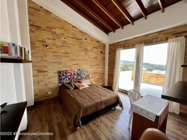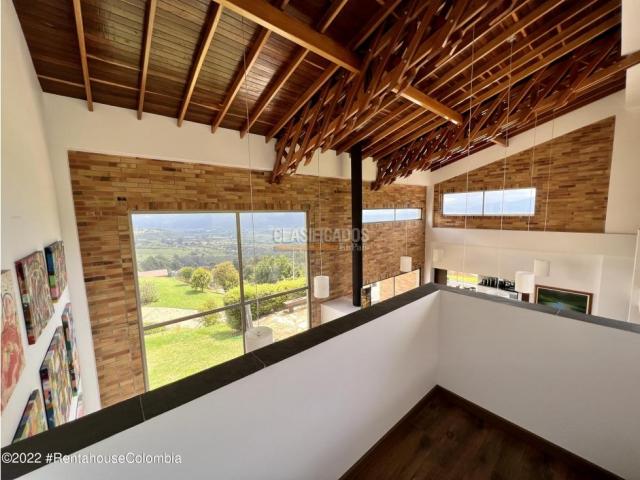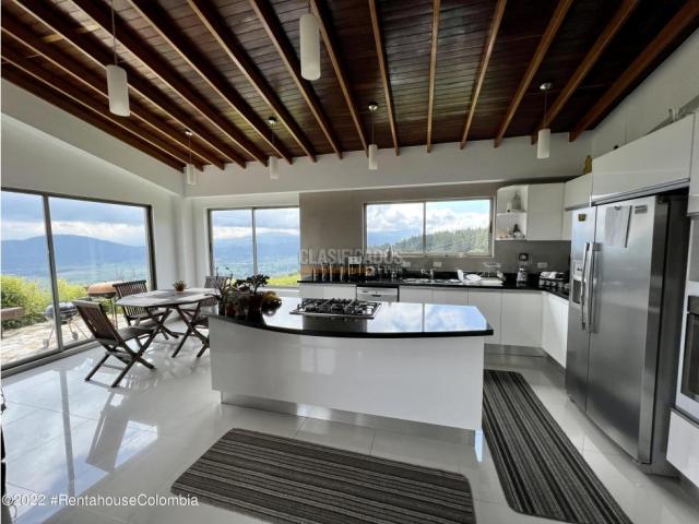 Casa en Chia (Cundinamarca) RAH CO: 26-327 - Vive el lujo y la naturaleza en perfecta armonía el Altos de Yerbabuena. Descubre esta espectacular casa campestre, ubicada en uno de los condominios mas exclusivos de la sabana con seguridad 24/7, ideal para quienes buscan privacidad confort y una vista inigualable a los valles de Sopó. Área del Lote: 2.294 M2, Área: Construida 336 M2, en 2 niveles. Primer Nivel: Al ingresar, te recibe una amplia Sala, comedor separada por una imponente chimenea natural que le da calidez, techos doble altura con un diseño arquitectónico especial en madera Abaco, acceso a la terraza exterior con pérgola y a un gran jardín interior que rodea toda la construcción, cocina de lujo tipo isla con lava vajillas, y muebles con capacidad para un buen almacenamiento, y una elegante puerta corrediza en madera que la independiza del área social. Baño social, estudio, habitación para sala de tv, habitación principal con amplio walkin... - Código 9811187