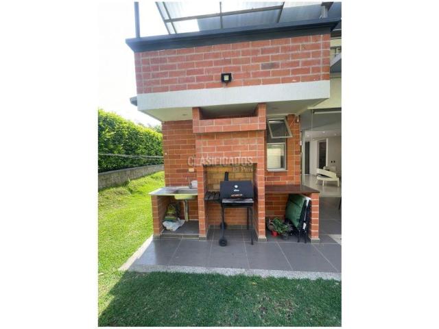 Hermosa casa campestre en Praderas de Verde Horizonte, en Jamundi, entrando por la avenida Cañas Gordas desde Cali, cerca del centro comercial La 14 De Alfaguara. Construida hace 5 años, Lote de 431m2, construidos 165m2, condominio de 170 casas con porteria y vigilancia, zona social con piscinas dobles, cancha de futbol, salon social, zona BBQ, sauna y turco, parque infantil, hermosas senderos, parqueadero visitantes, adminsitracion $350.000=. La casa es de 2 pisos, rodeada de amplia zona verde, cercada con muro y malla galbanizada. PISO 1: Parqueadero para 4 vehiculos, deposito, amplia sala comedor que se comunica por gran puerta ventanal con terraza y deck con espacio para sala de star y comedor auxiliar, con acceso a zona verde y BBQ, cocina integral con meson tipo bar, zona de oficios, baño social, habitacion o gran estudio, Gym. Piso 2: Tres habitaciones amplias con closets y salida a balcon, gran estudio adicional, balcon terraza para sala auxiliar o de tv, full terminados.