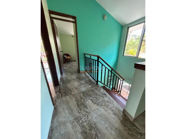 En venta casa de dos pisos en condominio Herrería , en la Hacienda el castillo. municipio de Jamundí. remodelada . Originalmente la casa era de un solo piso, y se reformo hace 6 años , cambiando instalaciones eléctricas e Hidráulicos; la casa actualmente cuenta en el primer piso dos habitaciones, 1 baño auxiliar-social completo, estudio o sala de tv , sala comedor, cocina abierta tipo americano, patio de ropas, zona de oficios y jardín. Un amplio parqueadero para 3 carros y un jardín que cobija el área externa de la casa. En el segundo piso tiene estudio y 3 habitaciones , la principal con baño, vestier y balcón. Las habitaciones auxiliares tiene closet y balcón , una de ellas con terraza balcón amplia. La unidad cuenta con piscina adultos niños, amplias zonas verdes, zona infantil, kiosko.