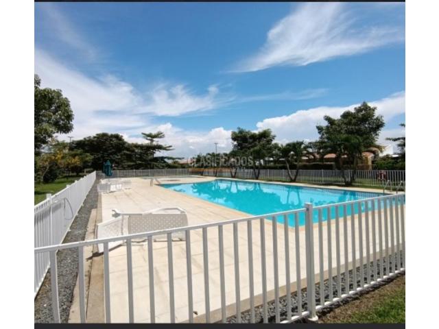 Vendo casa de una planta en Azucenas del Castillo, Jamundí Colombia. Lote de 314 M2 y área construida de 100 M2. La casa cuenta con estudio o sala de TV, sala comedor, cocina abierta tipo americano, zona de oficios independiente, terraza, baño social completo, habitación principal con closet, vestier, baño y salida a la terraza, dos habitaciones auxiliares con closet y baño de alcobas. Terraza, anjeos, cortinas romanas, blackout y 3 aires acondicionados. Parqueadero para 2 o 3 vehículos. El conjunto cuenta con vigilancia permanente, piscina para niños y adultos, baño turco, jacuzzi, salón social con cocina y baño, juegos infantiles, senderos peatonales, cerramiento eléctrico, baño para mascotas y parqueadero interno para visitantes