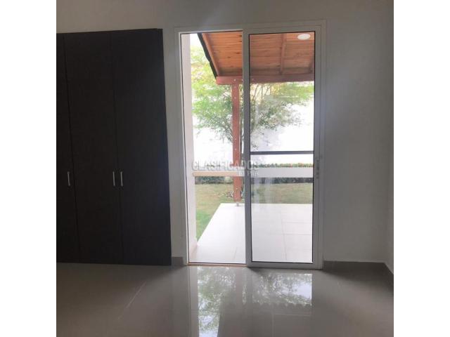 Vendo Casa campestre una planta, Bosques del Castillo Jamundí Colombia, tres habitaciones , vestier en habitación principal, un estudio, dos baños con ducha, baño social, cocina integral abierta tipo americano, zona de ropas, sala-comedor, blackouts, parqueaderos para tres vehículos, amplio jardín posterior y anterior; el condominio cuenta con piscina para adulto y niños, jacuzzi, turco, salón social y amplias zonas verdes, además de vigilancia permanente. Sector de alta valorización