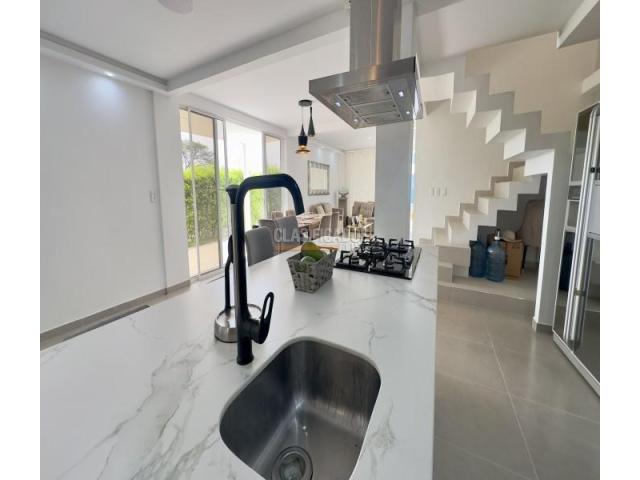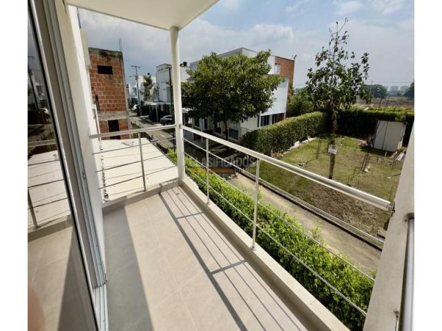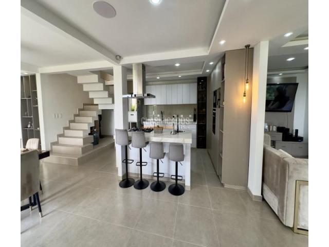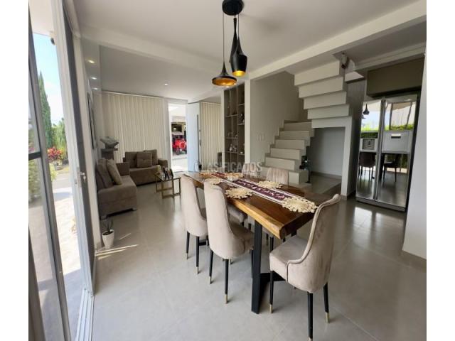 Casa esquinera de tres pisos en el exclusivo condominio Senderos de las Mercedes, Jamundí. Con 424 m² construidos sobre lote de 225,5 m². En el primer piso cuenta con antejardín, parqueadero cubierto, jardín lateral con pérgola, sala de estár, sala de TV con sonido y A/C, comedor, baño social completo y cocina integral con isla y electrodomésticos empotrados. En el segundo piso se encuentra la habitación principal con vestier y baño privado con doble lavamanos, estudio doble con salida a balcón y dos habitaciones auxiliares, cada una con baño privado y acceso a terraza cubierta. En el tercer piso hay salón de estar, habitación de huéspedes con baño privado, zona de oficios, depósito y terraza. Acabados en porcelanato y mesones en piedra sinterizada. La unidad ofrece piscina para adultos y niños, salón social, cancha múltiple, gimnasio al aire libre, juegos infantiles y senderos peatonales. Sector campestre de alta valorización, cerca a universidades, supermercados y vías principales.