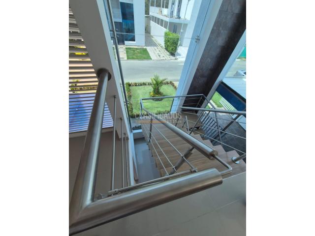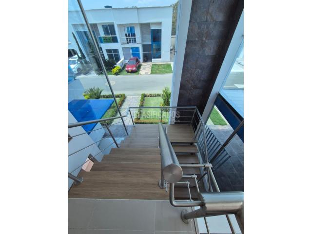 Espectacular casa en Condominio Villa de las Mercedes Jamundí, de 2 pisos y de área construida 440m², área privada 225m². Goza de espectaculares acabados de lujo diseño y doble altura en sala. Piso 1: Parqueadero para 4 vehículos: 3 cubiertos y 1 al aire libre, 2 comedor con cocina integral con isla, barra baño social, 1 habitación con closet y baño, sala de tv con mueble y pared decorada en oxidado. Patio de ropas con un pequeño closet amplio. Piso 2: 3 habitaciones todas con baños remodelados, 1 habitación con un pequeño balcón. Segunda habitación con un balcón largo amplio. Y habitación principal con hermosos ventanales acabados de lujo casa en óptimas condiciones. El condominio tiene 32 casas todas son blancas una sola fachada y cuenta con amplias zonas verdes, lago, piscina para niños y adultos, canchas múltiples, zona infantil y excelente vigilanc