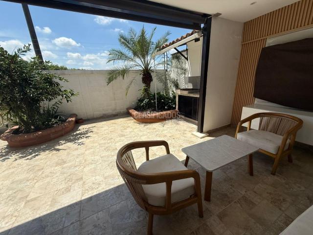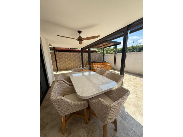 Hermosa casa en venta ubicada en el barrio El Castillo, Jamundí. Esta casa es de 400 m2 con dos pisos y estos constan de: Primer Piso: Parqueadero cubierto hasta para 3 carros, sala, comedor, cocina moderna, sala de TV, patio de ropas amplio, 1 baño social, dos habitaciones, baño con ducha para las dos habitaciones del primer piso y amplio patio exterior con espacio para sala y comedor de exteriores, asador y un hermoso jacuzzi techado. Segundo Piso: dos habitaciones principales. Habitación 1: baño privado, amplio Vestier, balcón y hermoso tocador. Habitación 2: baño privado, amplia y hermosa terraza con vista hacia la naturaleza, mueble de TV y Vestier amplio. Estudio con un amplio y práctico mueble, con un pequeño balcón.