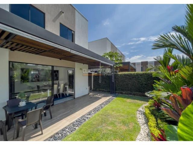 Venta de hermosa casa en Jamundí, esta vivienda es de 2 pisos con 135 m^2 construidos y un lote de 142 m^2. La casa cuenta con: -Estadero -Zona Verde -Cocina Integral -Habitación principal y 2 habitaciones auxiliares -2 baños -Sala de televisión -1 parqueadero La casa además de lo ya mencionado se entrega con 2 aires acondicionados, calentador, chapa inteligente, todos los paneles, cortina, black outs y mueble de televisión empotrado. Tiene dos parqueaderos y el jardín cuenta con sistema de riego.