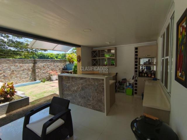 Cod Web : 125140 SE VENDE HERMOSA CASA, JAMUNDI , EL CASTILLO,DUPLEX, al sur de la ciudad, fácil acceso, excelente ubicación, consta de sala comedor, baño social, cocina integral, barra tipo americana , muebles de almacenamiento, horno, zona de oficios, todas las conexiones, calentador, ventanal corredizo, patio amplio con zona verde, jacuzzi, zona BBQ , zona bar acondicionada, antejardín con parqueadero lineal para cuatro vehículos, deposito, 3 habitaciones, dos con closet, la principal con baño ,closet, Vestier y balcón, 2 sala estar o tv, baño auxiliar, piso en cerámica, luces led, ambiente cálido y fresco, apto para la familia, cuarto de servicio con baño, zonas comunes como piscina para adultos y niños, amplias zonas verdes y salón social para eventos, turco, doble parque para niños, portería, vigilancia 24 /7, cámaras, shut de basura, cerca eléctrica, amplias vías de acceso, cerca de todo lo que necesitas y mucho más, que esperas agéndate ya mismo, sector exc Código interno: V125140