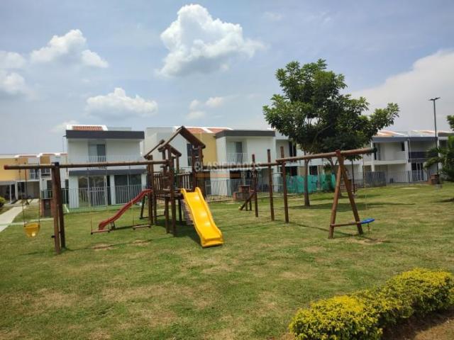 Vendo casa de dos plantas para estrenar en obra negra, Tulipanes del Castillo, Jamundí Valle. Lote 119 M2, construidos 82 M2. Piso 1: Sala comedor ampliada, cocina abierta tipo americano, baño completo, zona de oficios aparte, una habitación con closet y salida a la terraza, un patio que se conecta con la zona social del Conjunto y parqueadero para dos vehículos. Piso 2: Estudio o sala de TV con salida al balcón, habitación principal con baño, vestier y ventanal de piso a techo, habitación auxiliar con closet y balcón, una tercera habitación auxiliar con closet, baño de habitaciones. Parqueadero para dos vehículos. El Conjunto cuenta con vigilancia permanente, además tiene 14.432 m2 de zonas verdes comunes internas, salón social con cocineta y baños, piscinas para adultos y niños, senderos peatonales y zona infantil. A sólo 15 minutos del sur de Cali - Jamundí, con acceso desde la Vía Panamericana. Sector de alta valorización.
