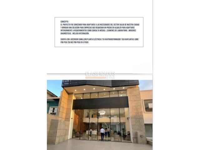 ALQUILO EDIFICIO CORPORATIVO SECTOR SALUD — CALI NOROCCIDENTE Edificio de 5 pisos a estrenar, diseñado y certificado exclusivamente para el sector salud. Cuenta con uso de suelo habilitado para internación de pacientes, imágenes diagnósticas, consulta médica y laboratorio clínico, cumpliendo con todos los requisitos legales para operar como clínica o IPS desde el primer día. La infraestructura cumple con la normativa RETIE y dispone de red contra incendios certificada, garantizando los más altos estándares de seguridad para pacientes, personal y equipos médicos. Autonomía energética total con planta eléctrica de 210 KVA y transformador de 150 KVA ante cualquier falla de red. Ascensor camillero, escaleras amplias, fachada con alta visibilidad comercial y parqueo habilitado para ambulancias. Ubicación estratégica en el noroccidente de Cali, apto para una o varias empresas del sector salud simultáneamente.