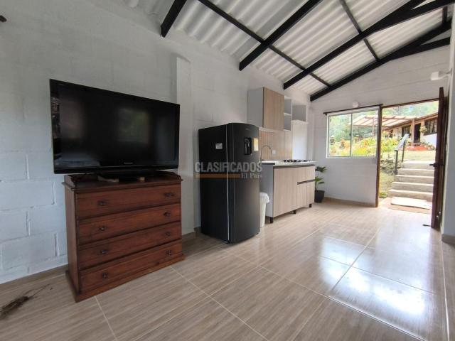 REGISTRO 36 - HERMOSA CABAÑA CAMPESTRE TIPO LOFT AMOBLADA - CONSTA DE UN SOLO ESPACIO CON COCINA, NEVERA, COMEDOR, SOFÁ, CAMA DOBLE, BAÑO CON DUCHA ELÉCTRICA, CÓMODA, TV PANTALLA PLANA- TIENE PARQUEADERO Y JARDINES COMPARTIDOS CON OTRAS CABAÑAS - EL CANON INCLUYE EL AGUA, DIREC TV Y LA GUADAÑADA DEL JARDÍN - EL INQUILINO SE HACE CARGO DEL INTERNET, LA ENERGÍA Y EL GAS - CELULAR 300-3229115.