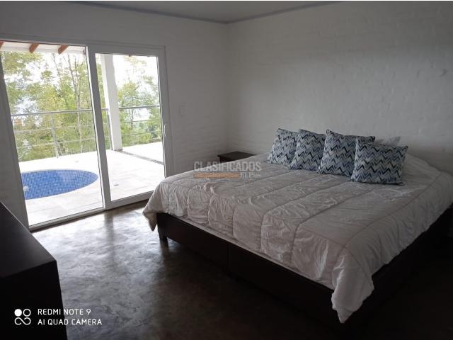 REGISTRO 38 - HERMOSA CASA CAMPESTRE MODERNA DE 200 M2 EN UN LOTE DE 5.000 M2 EN PARCELACIÓN - CONSTA DE 2 ALCOBAS, CADA UNA CON SU BAÑO, SALA, BAÑO SOCIAL, COCINA AMERICANA CON BARRA PARA COMER, ESTADERO, JACUZZI Y PÉRGOLA - TIENE PARQUEADERO DESCUBIERTO PARA VARIOS CARROS - LA CASA ESTÁ COMPLETAMENTE DOTADA Y LA PARCELACIÓN TIENE PORTERÍA - EL CANON INCLUYE SERVICIOS PÚBLICOS (AGUA, ENERGÍA, INTERNET) Y JARDINERO - CELULAR 300-3229115.