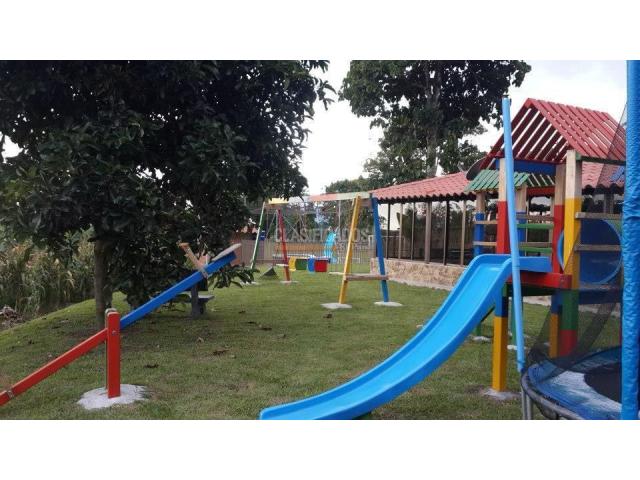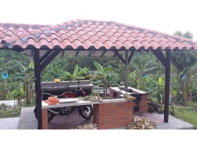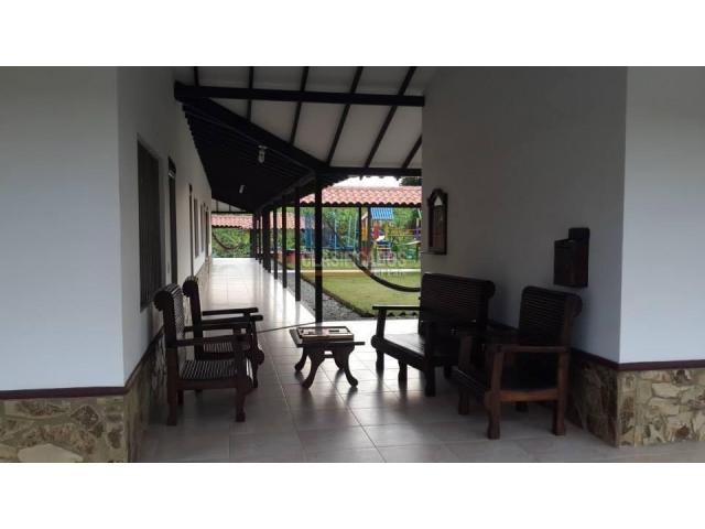 Se vende finca en el Eje Cafetero (Quindío), ubicada en Pueblo Tapado, kilómetro 1 vía Once, cerca al Hotel Las Colonias. La finca se encuentra a solo 5 minutos del Parque del Café. La casa principal cuenta con una amplia sala-comedor, sala de televisión, cocina integral, cocina exterior para asados, seis alcobas, cada una con baño privado y capacidad para 3 o 4 camas, además de baño social. Dispone de TV con DIRECTV, zona de ropas y un kiosco principal ideal para eventos, equipado con televisor, equipo de sonido y amplios espacios de parqueo para aproximadamente 35 vehículos. La finca también ofrece piscina para adultos y niños, tobogán, duchas, baño, vestier, cancha de fútbol engramada y enmallada, juegos de mesa, billar, billar pool, futbolito y juego del sapo para adultos y niños. En cuanto a la parte agrícola, cuenta con cultivos de plátano, yuca, frijol, maíz y árboles frutales. Precio: $3.900 millones (negociables). También se alquila por temporadas. Para mayor información, comunicarse con Rocío Núñez al celular 316 397 1491 o al PBX 602 553 2727. Código interno: V464557