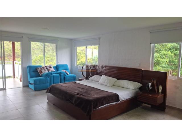 Descubra esta exclusiva finca en el kilómetro 30, ubicada en una parcelación privada que le ofrece un refugio de tranquilidad y naturaleza. Diseñada para el descanso y el disfrute familiar, esta propiedad destaca por sus amplios espacios y su elegante arquitectura. La casa principal cuenta con cinco habitaciones y siete baños, incluyendo una impresionante habitación principal con dos balcones, vestier y un jacuzzi que brinda una vista panorámica excepcional. En su primer piso, encontrará un acogedor hall de recibo, una sala de televisión con acceso a la terraza, un comedor con capacidad para diez personas y una moderna cocina americana. Además, la finca dispone de una casa del agregado con dos habitaciones, ideal para huéspedes o personal de servicio. Los exteriores son un verdadero deleite: disfrute de una piscina, jacuzzi, turco, cancha de fútbol y amplias zonas verdes que invitan al esparcimiento. Con diez parqueaderos y un entorno natural que garantiza privacidad, esta propiedad