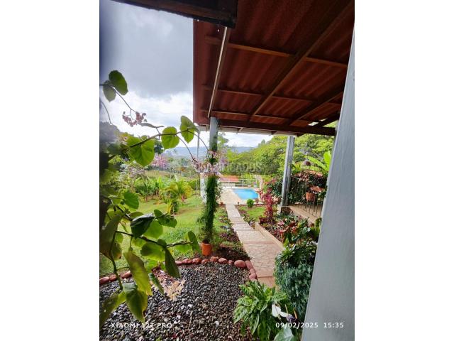Finca 3000mtrs la casa consta 1piso 2habitaciones 2 baños sala grande comedor cocina grande 2piso habitación principal con un baño super grande closet y balcón con una vista espectacular más otra habitación piscina un kiosko grande con baño parqueadero casa de agregado 2 habitaciones 1 baño sala árboles frutales dentro de condominio administración 235000 valor 850 se recibe permuta en el sur un apartamento