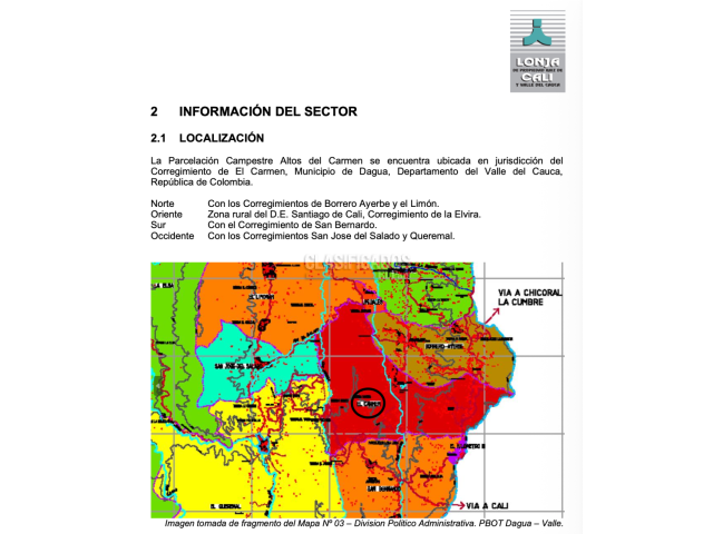 Se vende lote ubicado en La Parcelación Campestre Altos del Carmen, se encuentra ubicada en jurisdicción del Corregimiento de El Carmen, Municipio de Dagua, Departamento del Valle del Cauca. 5.700m2 Agua y Energia Telefono y whatsapp: 3015809483